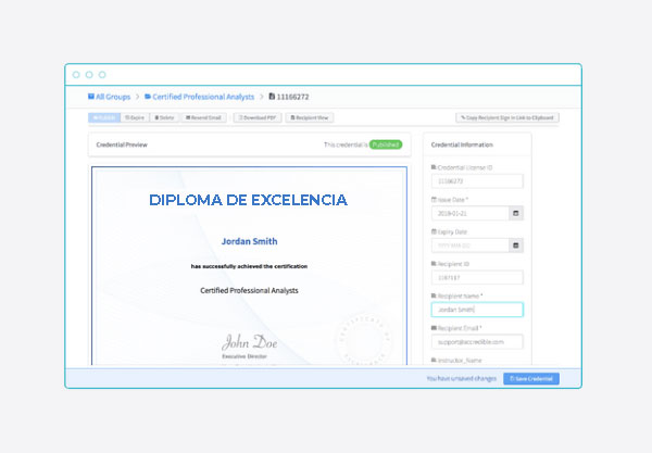 S.A.F.E es la forma más fácil de compartir los diplomas digitales en la blockchain. Proporciona un valor sin igual en términos de verificación, seguridad, facilidad de uso, integración, análisis y permite compartir en redes sociales.